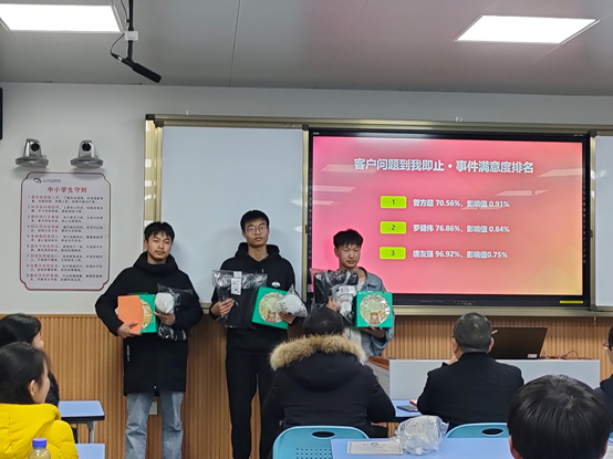 京东校企合作项目运营老师陈一帆宣布了于11月2日至11月4日总计协助标注商家问题29600条,人均处理740条 ,其中我校19级商务班曾方超同学于11月1日的接待量在全国校企部门排名第23(四川省仅我校一位入榜),对学生的实训给予充分的肯定并对“双十一”工作提出具体要求,希望学生们能把书本知识有效融入到社会实践中去。