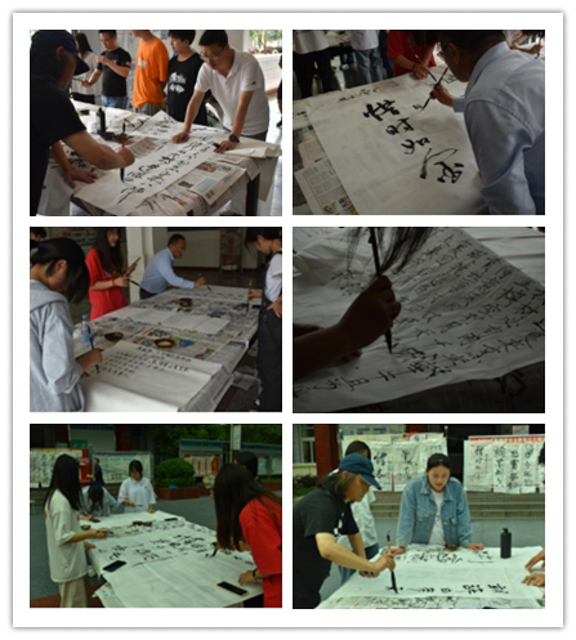 汉字之美,在于传承。为进一步弘扬和传承中国书法的历史文化,营造良好的校园文化建设氛围,530日下午,教务科、学生科、校团委协同在旧教学楼大厅举办了翰墨飘香传经典,妙笔写意走龙蛇软笔书法活动。