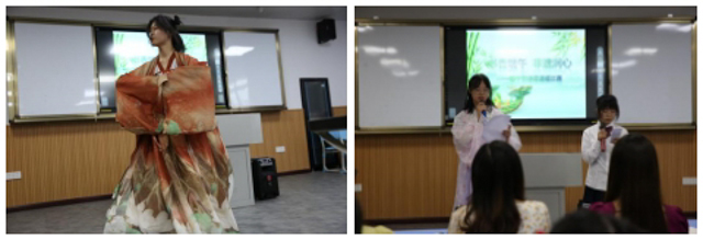 伴着唯美的古风音乐,同学们化身婀娜的仙子、玉树临风的君子、英姿飒爽的侠士等,通过诗歌朗诵、舞蹈、古歌吟唱等多元化的才艺展示,打造出了一场精彩的文化盛宴,让在场师生充分感受到传统文化的魅力。