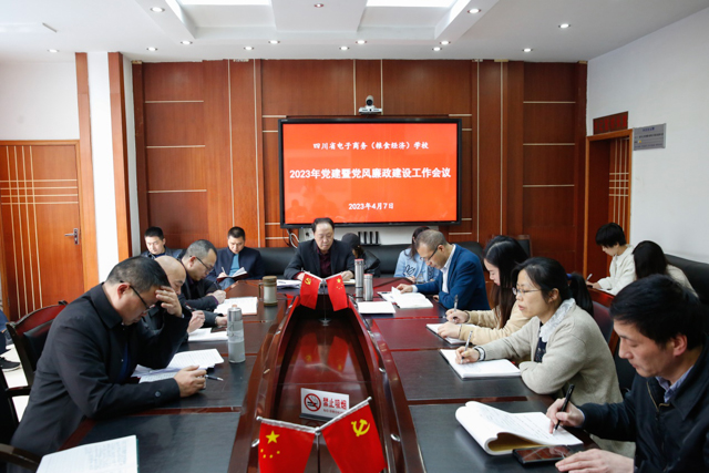 4月7日,四川省电子商务(粮食经济)学校召开党建暨党风廉政建设工作会议,重温学习党的二十大精神,通报2022年度全市教育系统党组织书记抓党建述职综合评价意见,对我校2023年的党建和党风廉政建设工作进行安排部署。全体中层以上干部、党员教师代表近40人参加会议。会议由党委书记、校长秦明功主持。