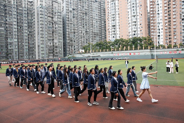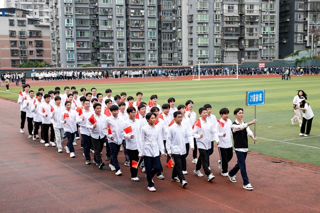 雨洗秋空明似水,秋晴未必减春晴。1018日下午,伴随着激昂的《运动员进行曲》,各班同学精神抖擞、口号响亮,迈着铿锵有力的步伐向主席台走来。