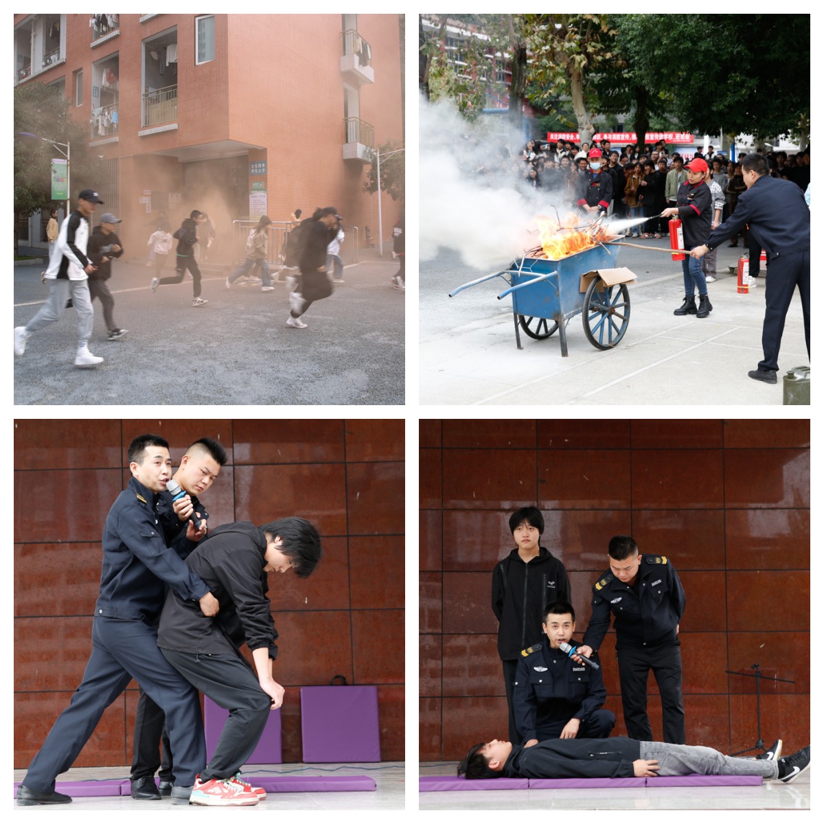 11月8日下午13时50分,应急疏散组、安全保障组、医疗救援、物资保障组以及各楼层负责老师准时到岗到位;14时整,随着火灾警报拉响,全校师生按照预案完成了从学生宿舍到篮球场的应急疏散演练,消防教官对师生进行了海姆立克急救法、心肺复苏法、消防灭火技能培训。
