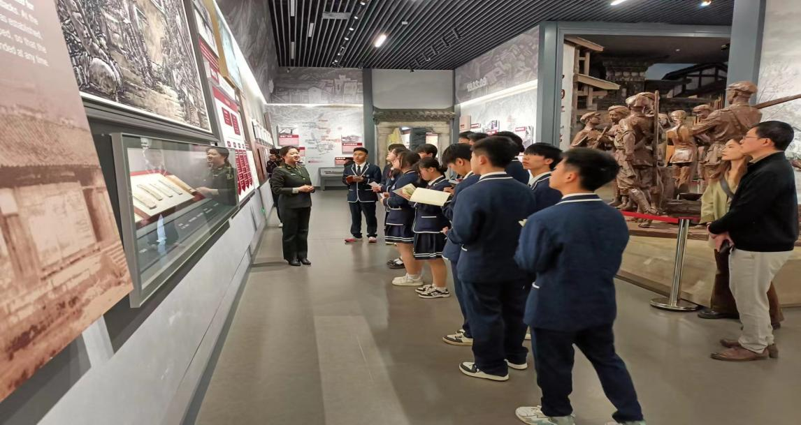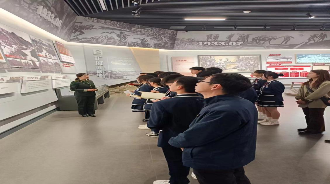 在红军文化陈列馆(战史馆),师生们聆听讲解员讲述红色故事,追忆那段曾经的峥嵘岁月,了解革命先辈们可歌可泣的英雄壮举。