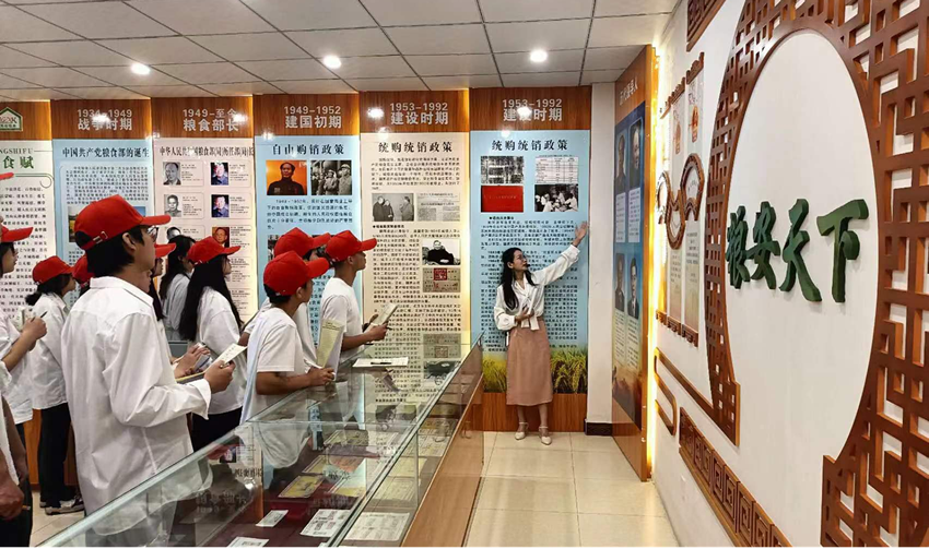 一丝一缕当思来之不易,一粥一饭恒念物力维艰。在参观粮史馆的过程中,讲解员对粮史、劳动工具发展史、我国粮食储备、粮食安全等方面进行了详细介绍,同学们从中国粮食人爱国爱粮、艰苦创业的奋斗历程和感人事迹,感受到我国历来对于保护好粮食安全的坚定决心,领悟到“民以食为天、食以安为先”的深刻道理。