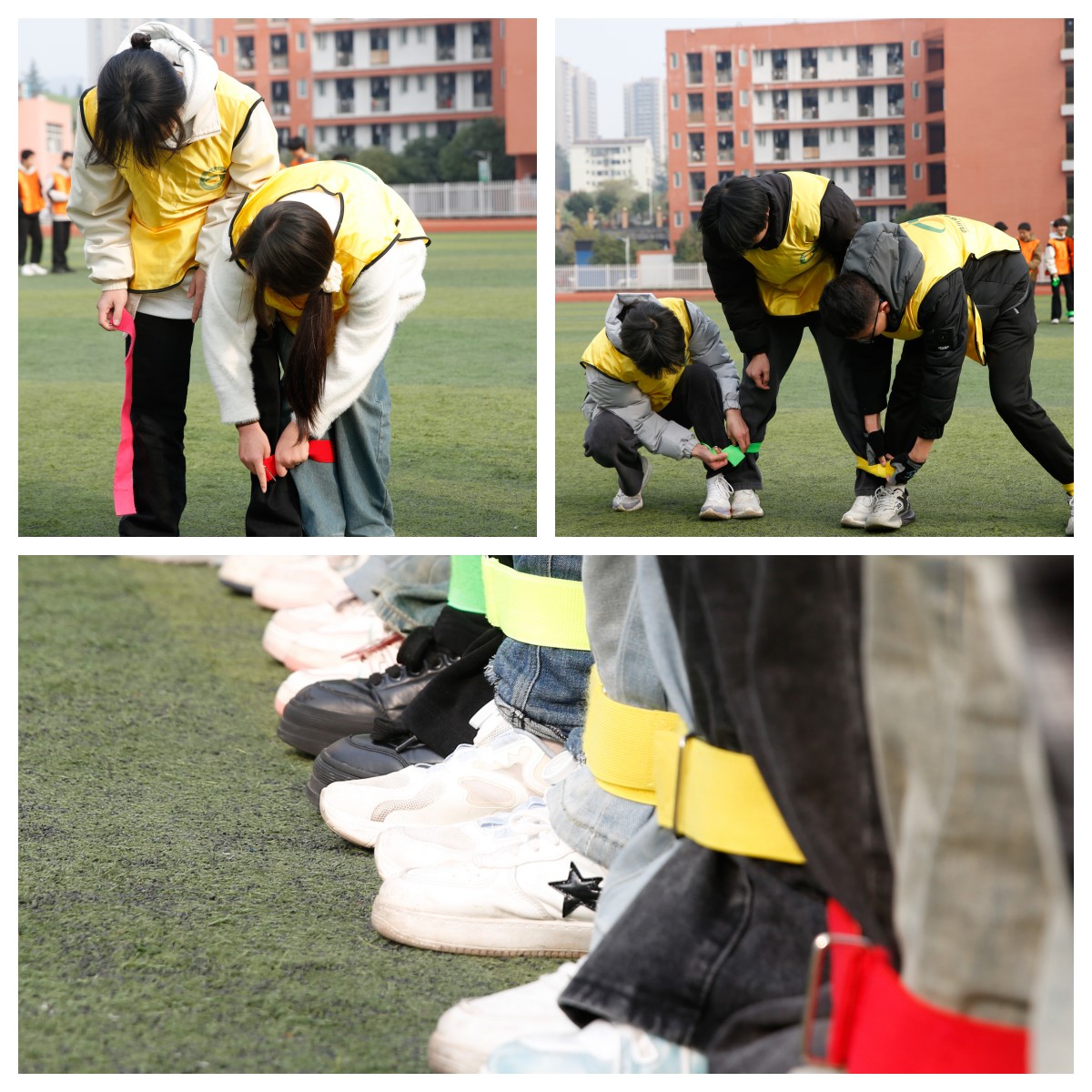 活动开始前,同学们分成四支队伍——红队、黄队、蓝队、绿队,每个小队展示了队伍口号和队歌,各展青春风采,尽显少年风华,这完成了破冰的第二步——相识。