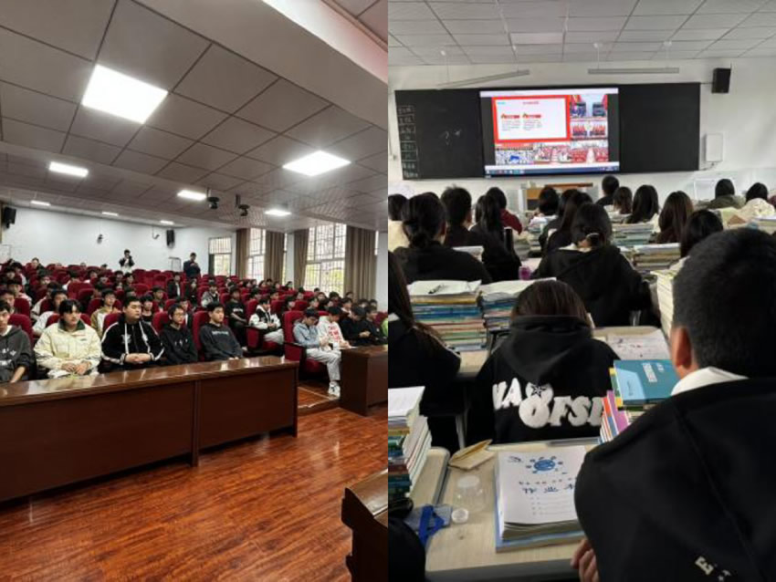 分管校领导、相关科室人员、保安、物业、食堂从业人员、学生代表在多功能会议室聆听专题讲座,各班学生在教室通过视频直播收看。