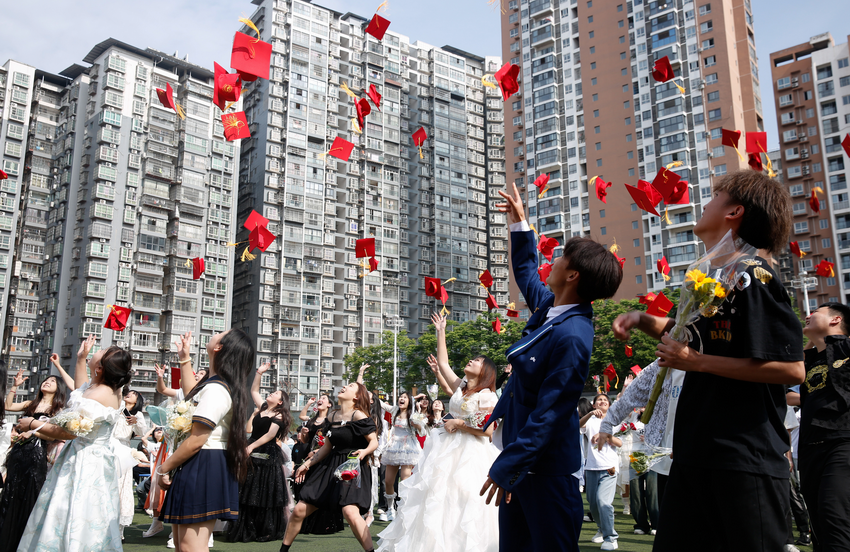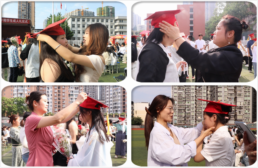 最后,同学们集体向天空抛洒礼帽,主持人宣布成人礼仪式圆满礼成。