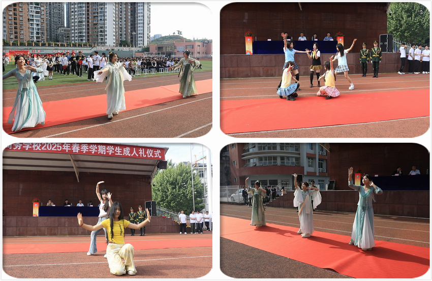 十八而志,不负韶华。为弘扬中华优秀传统文化,引导学生深刻体会成年的责任与担当,感恩父母、师长的养育与教育之恩,激发学生为梦想拼搏、为社会奉献的热情,增强社会责任感和使命感,我校于2025年4月28日在校田径运动场为年满十八周岁学生隆重举行了以“十八笃志,知礼承责”为主题的成人礼仪式,为即将迈入成年行列的学子们送上一份意义非凡的“成人礼”。