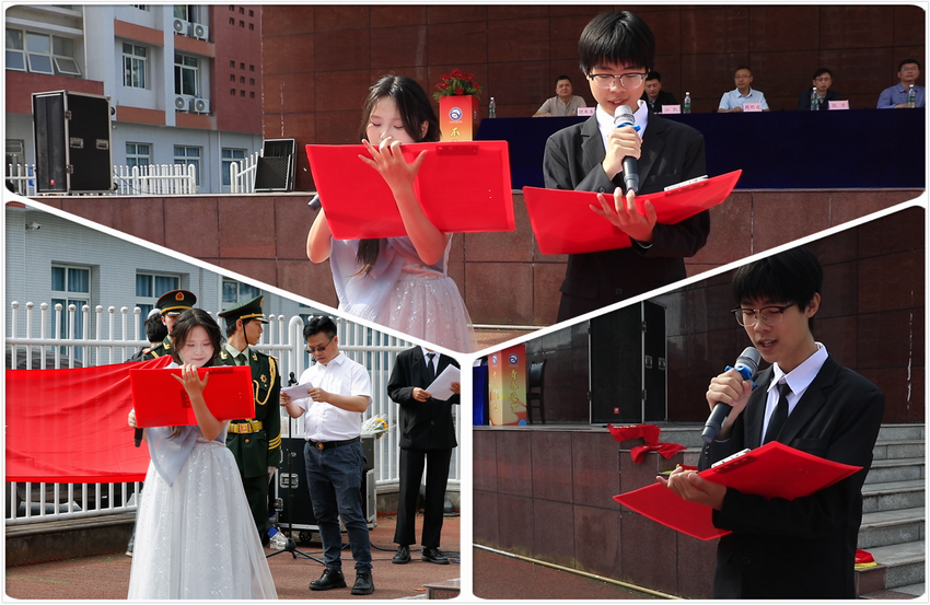 在诗朗诵表演中,孟柳君和唐嘉骏同学声情并茂,从成长的点滴回忆到对未来的憧憬,从感恩父母的养育之恩到肩负社会责任的决心,字里行间充满了青春的朝气与坚定的信念。现场师生与家长深受感染,沉浸在成长的感动与自豪之中。