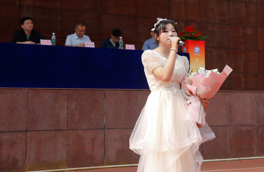 学生代表2023级会计事务1班周雅梅同学走上台前,分享自己在学校成长的点滴经历,回顾过往的奋斗与收获,展望成年后的目标与梦想。她代表全体学生表达对父母、老师、学校和社会的感恩之情,坚定地承诺将以更加积极进取的姿态迎接未来的挑战,努力提升自身技能,为社会创造价值。