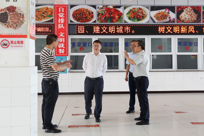 调研期间,王程局长一行视察了教学楼、大礼堂、学生宿舍、食堂、监控中心等场所,详细了解了学校的办学规模、专业设置、师资力量等情况,询问了学生的生活条件和食品安全问题。