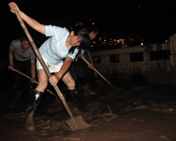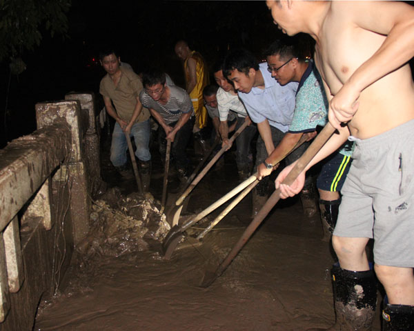 达州全市普降暴雨,洪峰无情袭击达州,致滨河路等多处低洼地带严重被淹,多处门市被淹,物资被卷,损失严重。为避免洪水退后因时间推延造成淤泥板结给清淤工作带来更大的困难,6月25日晚10:30至26日凌晨5:30,我校组织15名党员干部职工深入一线,全力投入滨河路清淤救灾,恢复道路通行,帮助受灾群众把灾害损失降到最低程度。
