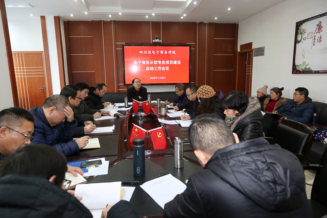 校党委委员、副校长刘春申同志向与会人员宣读了《四川省教育厅四川省人力资源和社会保障厅 四川省财政厅关于公布2020年度四川省中等职业学校示范(特色)专业建设计划立项建设项目名单的通知》(川教函〔2019〕647号)文件,我校申报的电子商务专业已成功进入示范(特色)专业建设计划立项建设项目名单。同时,他传达了四川省中等职业学校示范(特色)专业建设计划项目建设方案和《任务书》编制培训会议精神,就我校电子商务示范专业项目建设方案和《任务书》编制,进行了工作安排和部署。