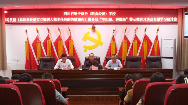 为深入学习贯彻省粮食和物资储备局党组通知精神,进一步办好思政课,强化廉政警示教育,筑牢思想道德防线,推进当前工作向纵深开展,9月28日,四川省电子商务(粮食经济)学校召开学习贯彻《思政课是落实立德树人根本任务的关键课程》及开展“守纪律、讲规矩”警示教育月活动专题学习研讨会。