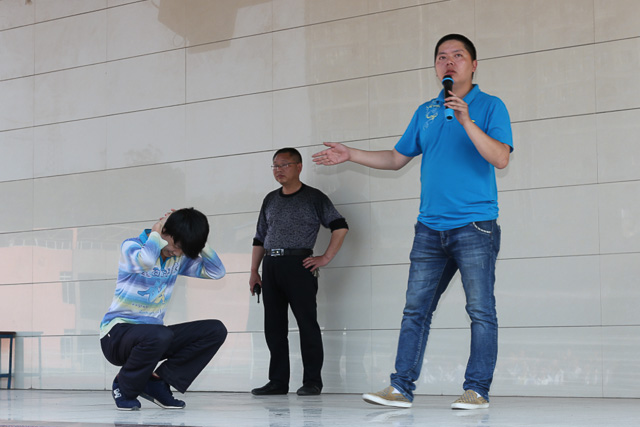 为确保演练安全有序进行,学校召开专题会议,精心制定方案,并成立以校党委书记、校长秦明功同志为组长的应急疏散演练活动领导小组。10日16时整,校党委委员、副校长刘春申同志用广播宣布“四川省电子商务学校学生应急疏散演练开始,请大家各就各位”,随后警报声响起,模拟地震发生的演练活动正式开始,学生正常上课突然被打断,各班任课教师指挥同学们在教室内抱头躲在墙角、课桌下等安全地方,一分钟后,广播再次响起“地震结束,各班级迅速按顺序依次进行疏散”,全校1200余名师生分别从教室和办公室迅速有序地撤离到足球场集合。班主任现场清点学生人数,并报指挥长。现场还模拟了火灾扑灭、灾害自救与互救和搜救与医疗救助等情境。