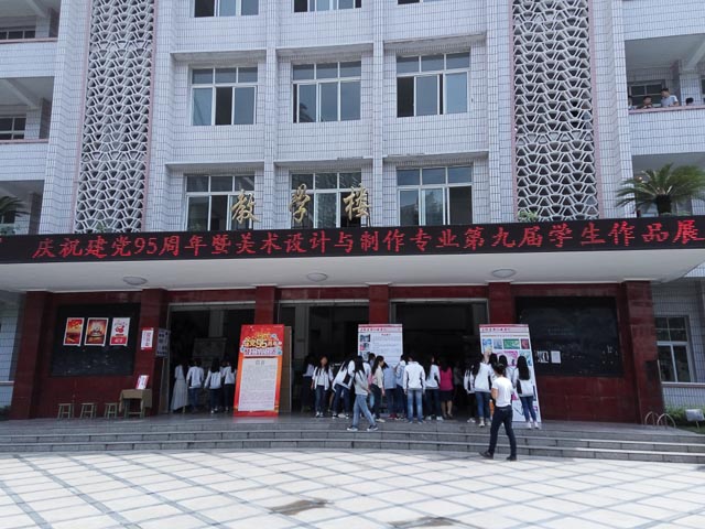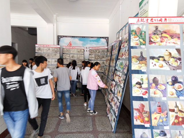 时值中国共产党建党95周年之际,为“扎实开展‘两学一做’,弘扬崇高师德风范”,我校“庆祝建党95周年暨美术设计与制作专业第九届学生作品展”于2016年5月23—29日在教学楼底楼门厅成功举办。