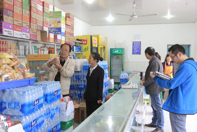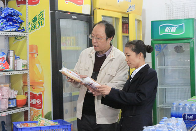 秦校长十分关心学生生活,到小卖部询问面包价格以及开水供应情况,巡查了货物储备情况,小卖部干净卫生,货物摆放整齐,希望继续保持。随后,又到食堂查看学生午餐准备情况,详细询问了学生午餐准备情况,又亲到蔬菜储物间查看蔬菜摆放及卫生情况。要求食堂管理人员加强食堂管理不松懈,处处、时时讲卫生;食堂用具坚持高温消毒,蔬菜及副食品储藏要通风;加强食堂员工的健康知识培训,继续保持,再接再厉。