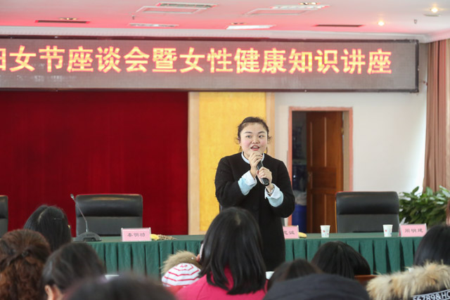 教师吴岚在活动中代表学校全体女职工发言:一是感谢学校领导的殷切关怀;二是感谢全体女职工的辛勤付出;三是希望全校女职工珍爱自我、奋发有为。