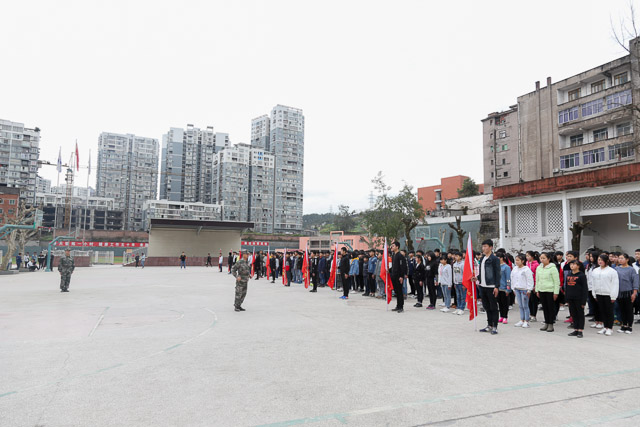 我校参照军事化管理院校试行“准军事化”管理以来,学生一日作息井然有序,校园风貌焕然一新。图为试行“准军事化”管理的班级课前集合掠影,同学们集合迅速,口号响亮,步伐整齐,精神饱满,斗志昂扬。