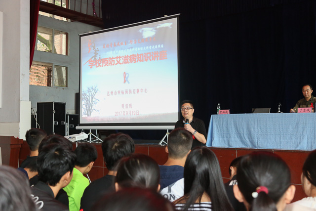 2017年9月19日下午3时,我校组织2017级新生在大礼堂开展了预防艾滋病科普宣传专题讲座活动,特邀达州市疾病预防控制中心副主任医师、学校防艾教育指导专家贾伯成同志担任主讲。我校党委委员、分管副校长于忠诚同志出席本次活动并对贾伯成专家莅临学校开展讲座表示热烈欢迎并致以真诚的谢意!