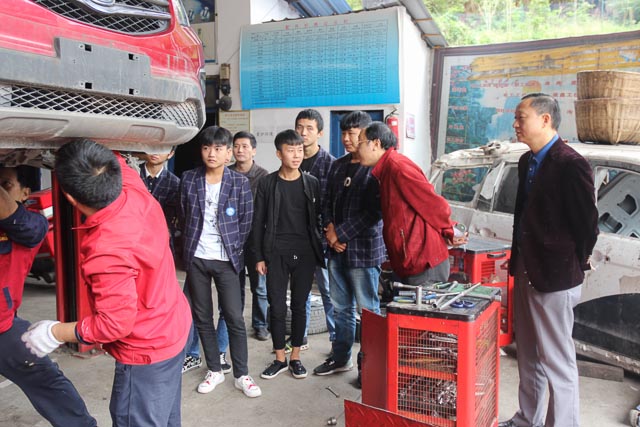 10月16日上午,党委书记、校长秦明功率校党委委员、副校长于忠诚、刘春申及教务科、实训科、机电教研室负责人一行五人到我校校外汽修实训基地——达县美新汽修厂开展现场工作调研,全面检查和指导汽修专业校外实训教学开展情况,并就如何进一步深化“校企合作”模式与企业方进行了卓有成效地研讨。
