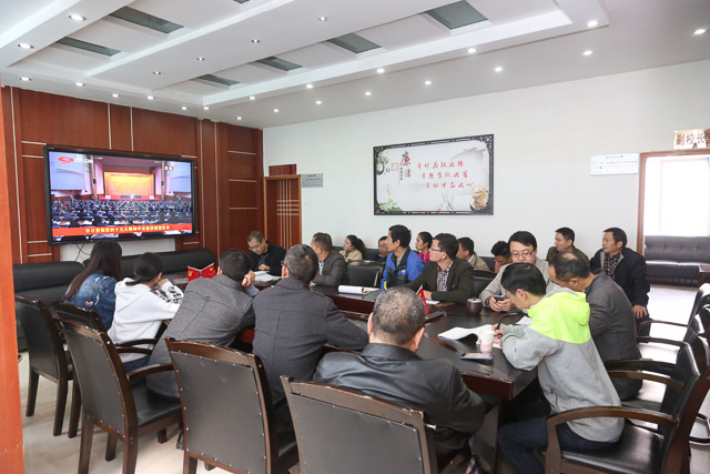 按照省粮食局的统一安排,上午9时,我校组织干部职工在行政楼三楼会议室集中收看了学习贯彻党的十九大精神中央宣讲团报告会电视直播。校党委书记、校长秦明功在达州市委分会场参加报告会。校领导于忠诚、周明建(刘春申在省直机关工委党校学习培训),各行政科室全体人员、无课的教师共四十多人集中收看。