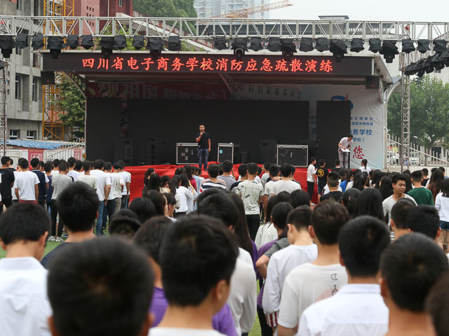 2018年6月15日早晨6时37分,女生宿舍311寝室实况模拟突然发生火情,火灾警报声在宁静的校园急促响起,班主任、宿舍管理员及安保人员迅速奔赴各楼层,组织学生疏散。2000余名学生按照演练预案要求的疏散线路快速有序地进行逃生疏散,用时2分24秒,消防安全应急疏散演练顺利完成,达到预期效果。