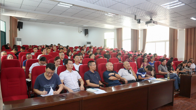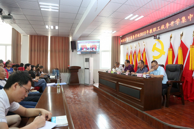 8月26日上午10:00,我校在一阶会议室召开了2019年教职工秋季开学集中学习研讨大会。学校全体教职工共120余人参加会议,校领导秦明功、于忠诚、周明建、刘春申出席会议,大会由于忠诚同志主持。