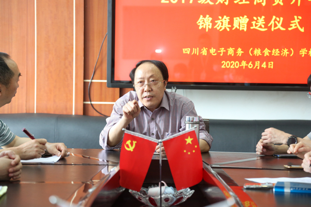 6月4日上午,在我校行政三楼会议室隆重举行了“铭记师恩 奋力前行”2017级财经商贸升学班向母校赠送锦旗仪式。校党委书记、校长秦明功同志,校党委委员、副校长于忠诚同志,教务科、学生科、质管办、行政办、网信中心负责人,17级财经商贸班班主任及学生代表出席了活动。活动由学生科副科长陈定江同志主持。