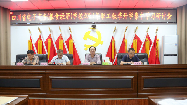 7月12日下午,四川省电子商务(粮食经济)学校开展职工集中学习暨“讲担当、守纪律、促作为”警示教育月活动动员大会。校党委书记、校长秦明功同志主持会议并作廉洁从政专题党课辅导。 会议传达学习了中共四川省粮食和物资储备局直属机关委员会《关于转发〈中共四川省发展和改革委员会党组关于开展“讲担当、守纪律、促作为”警示教育月活动的通知〉的通知》(川粮直机党〔2021〕24号);组织学习了习...