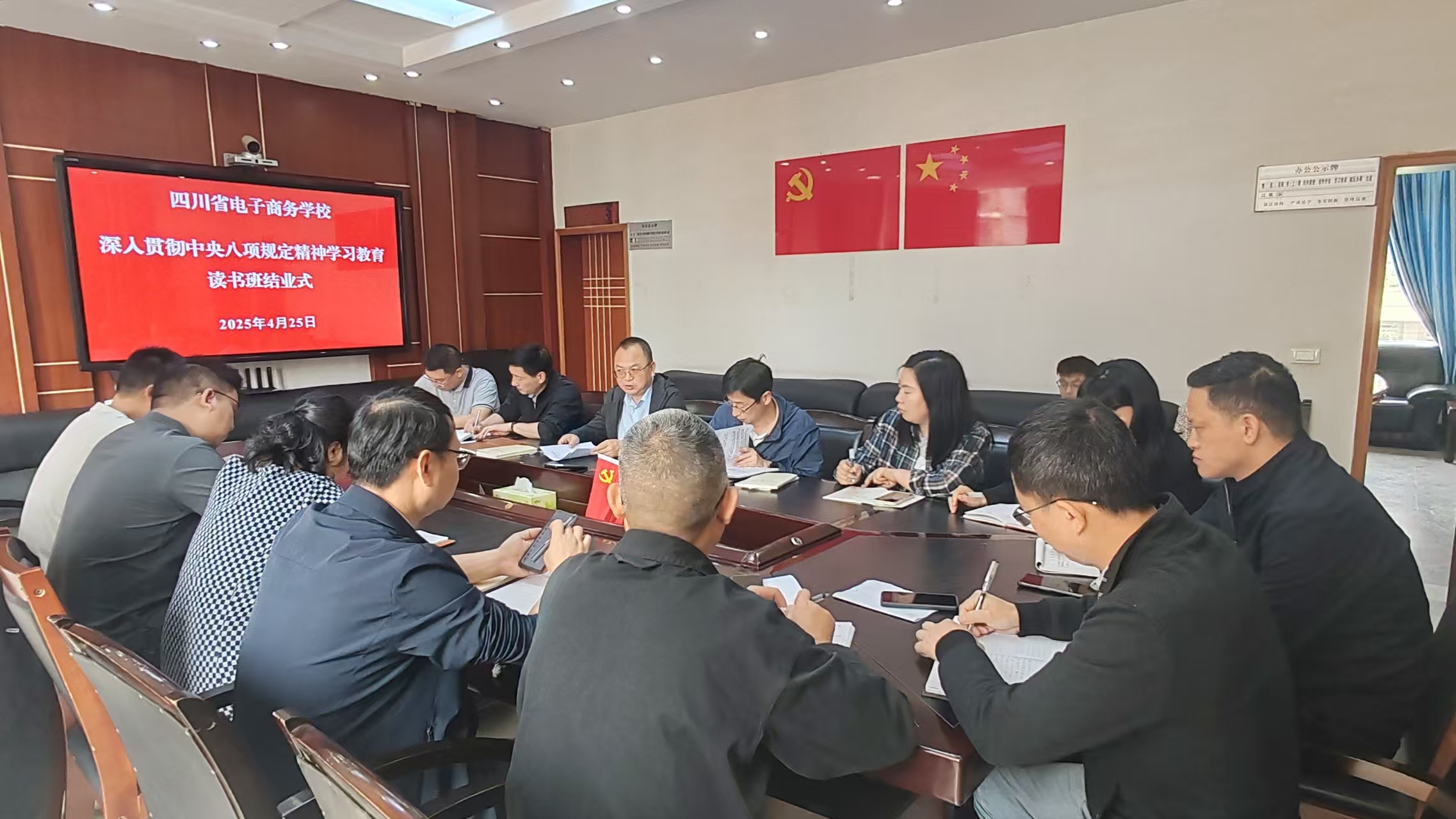 4月23—25日,四川省电子商务学校(四川省粮食经济学校)举办深入贯彻中央八项规定精神学习教育读书班暨2025年第3次党委理论学习中心组学习(扩大)会。读书班为期3天,采取个人自学、现场学习、警示教育、集中研讨等方式,深入学习领会习近平总书记关于加强党的作风建设的重要论述、中央八项规定及其实施细则精神等材料,观看警示教育片《惩治蝇贪蚁腐》,开展主题交流研讨。校领导、全体中层干部及支...