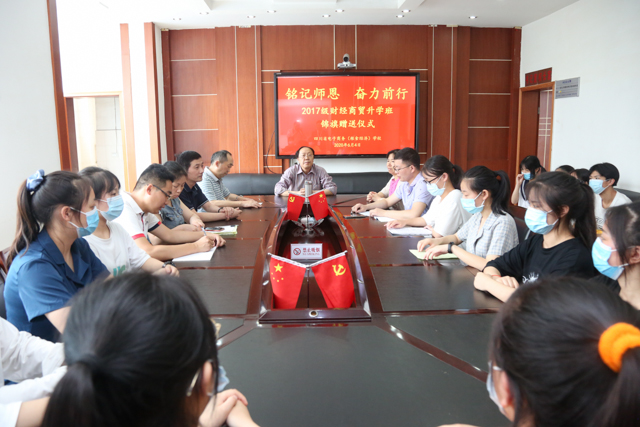 6月4日上午,在我校行政三楼会议室隆重举行了“铭记师恩 奋力前行”2017级财经商贸升学班向母校赠送锦旗仪式。校党委书记、校长秦明功同志,校党委委员、副校长于忠诚同志,教务科、学生科、质管办、行政办、网信中心负责人,17级财经商贸班班主任及学生代表出席了活动。活动由学生科副科长陈定江同志主持。 17级财经商贸升学班2018-2019学年中职国家奖学金获得者杜莎莎同学首先作了发言。她感谢学...