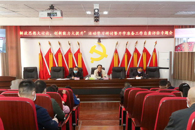 为进一步贯彻落实新冠肺炎疫情防控精神,扎实做好17级升学班开学复课准备工作,4月7日,学校在一阶多功能会议室召开“解放思想大讨论、创新能力大提升”活动学习研讨暨开学准备工作自查评估专题会,将疫情防控与保教复学两手抓、两手硬、两不误。校党委委员、副校长于忠诚、刘春申,各科室负责同志、各支部委员近30人参加会议。校党委书记、校长秦明功主持会议并就2017级升学班开学复课做重点强调部署。 &nbs...