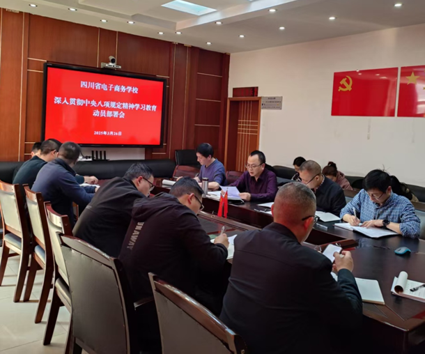 2月13日,四川省电子商务学校召开2024年度民主生活会会前理论学习暨2025年第1次党委理论学习中心组学习会。学校党委委员、中层干部、各支部书记参加会议。会议由学校负责人刘春申同志主持。 会议集中学习了习近平总书记在中共中央政治局民主生活会上的重要讲话以及省委常委班子2024年度民主生活会主要精神,围绕习近平总书记关于党的建设和党的纪律建设的重要思想概论等一系列新思想、新观念、...