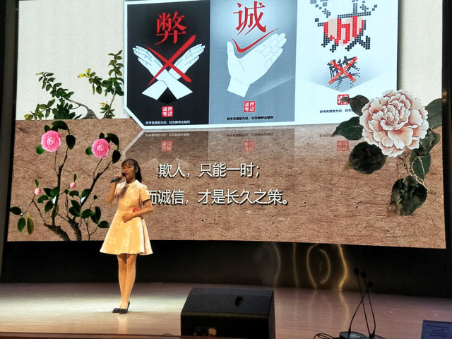 6月13日晚,由四川文理学院、达州市人民银行支行主办的“第四届‘诚信杯’‘抱诚守真·诚信为本’”的演讲比赛决赛在文理学院莲湖校区隆重举行。四川文理学院院长、达州市人民银行支行副行长、四川省电子商务学校于忠诚副校长等领导共同出席了本次活动。 徐志雯同学演讲《坚守诚信的心》 为了参加此次决赛,五月中旬我校校团委组织各班级共18位选手参加了以“诚信”为主题的校内演讲比赛。经过评委的认...