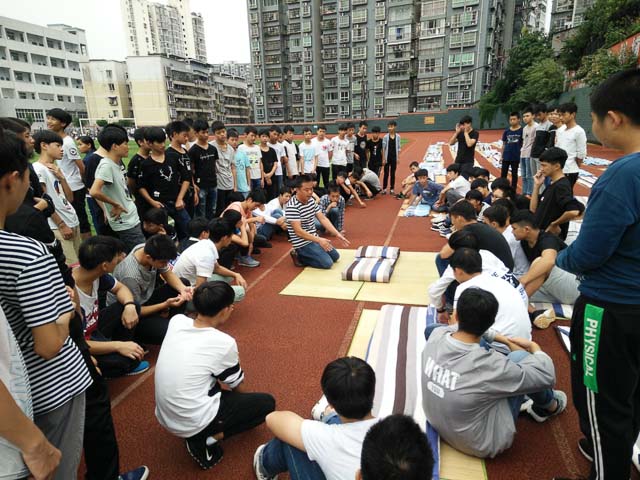 为创建洁静优美的寝室环境,促成学生良好生活习惯的养成,提高学生整理内务的能力,2017年9月26日下午课外活动时间,二大队(由2017级“准军事化”管理班级构成)全体学生带上凉席、被子齐聚足球场,涌跃参加了宿舍内务重头戏----叠被子的集训活动。学生科相关人员全程观摩了此次活动。 图一:李雪锋老师正在耐心地给同学们讲要领做示范 “叠好被子,三分靠折,七...